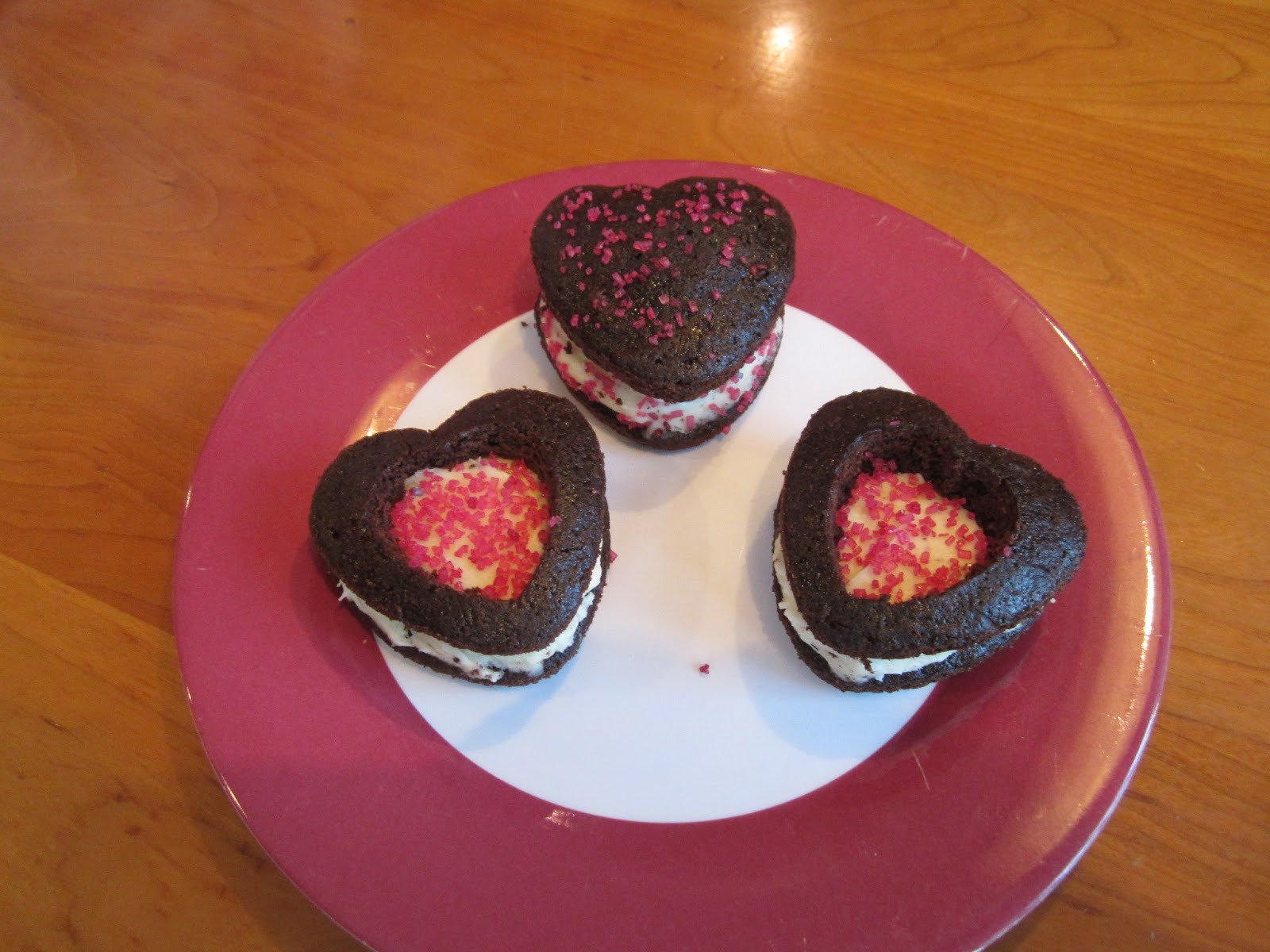cut out a heart in one of the heart cakes (do this before placing on top of the